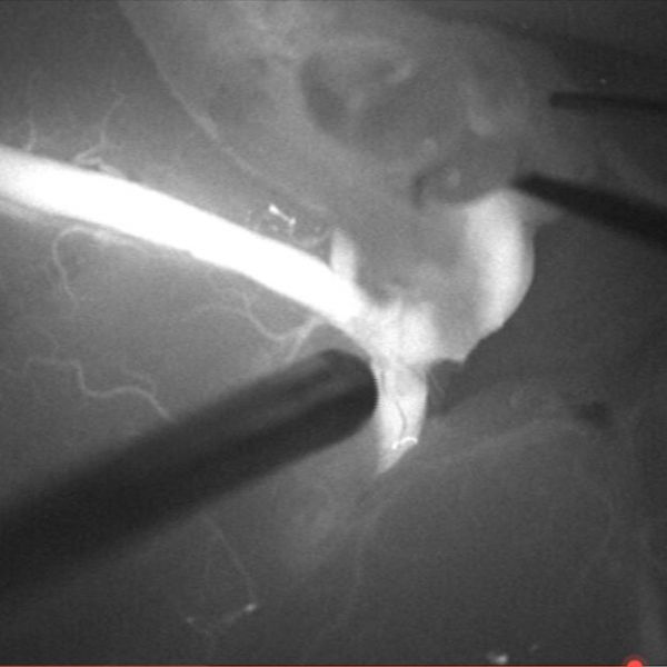 术中荧光造影显示吻合通畅