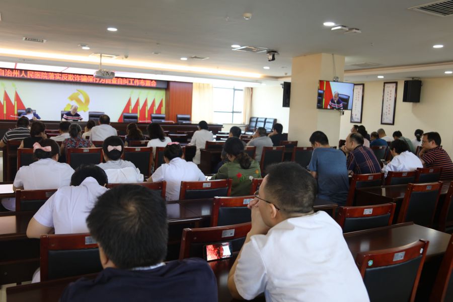 7月2号上午11:00,州人民医院在内科大楼23楼2号会议室,召开州人民医院开展反欺诈骗保行为自查自纠工作布置会。院纪委书记田茂友,医务科、经管科、医保科、护理部、纪检监察室、质控科负责人和各临床医技科室科主任及护士长参会。会议由院总会计师莫莉萍主持。