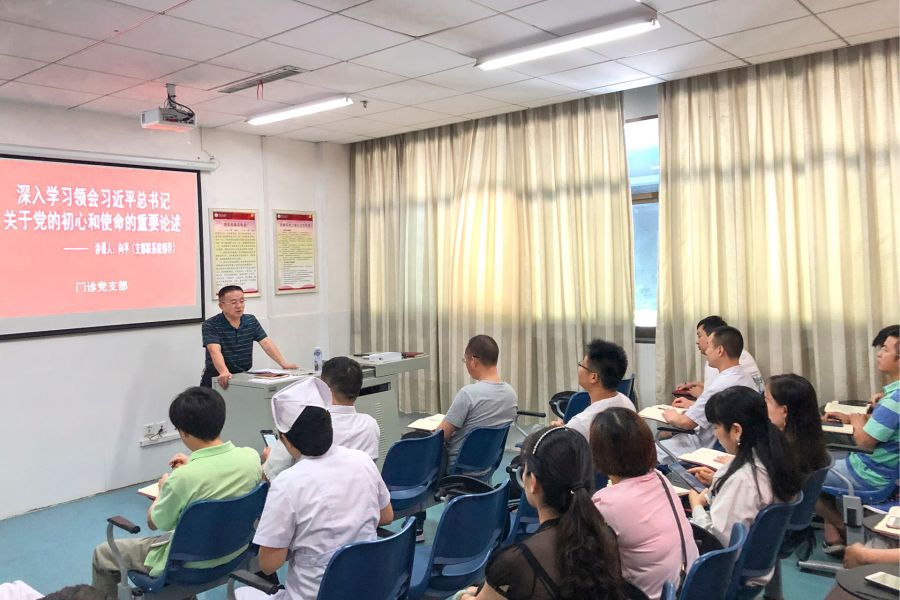 向平副院长就如何深刻把握“不忘初心,牢记使命”的丰富内涵、为什么强调“不忘初心,牢记使命”以及怎样才能做到不忘初心、牢记使命进行了详细的讲课。他还充分联系门诊系统建设发展和门诊工作当前面临的问题和改革的实际进行了理论联系实际的讲解和探讨。听课的党员们受到了一次深刻而又生动的“不忘初心,牢记使命”的教育学习。