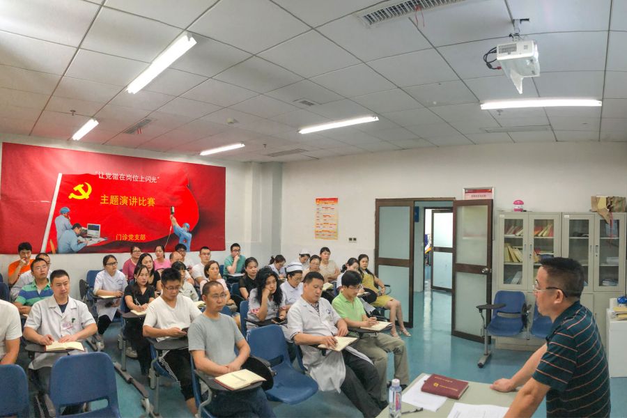 7月10日下午3:00,门诊党支部组织党员在支部党员活动室听了一堂由支部联系院领导