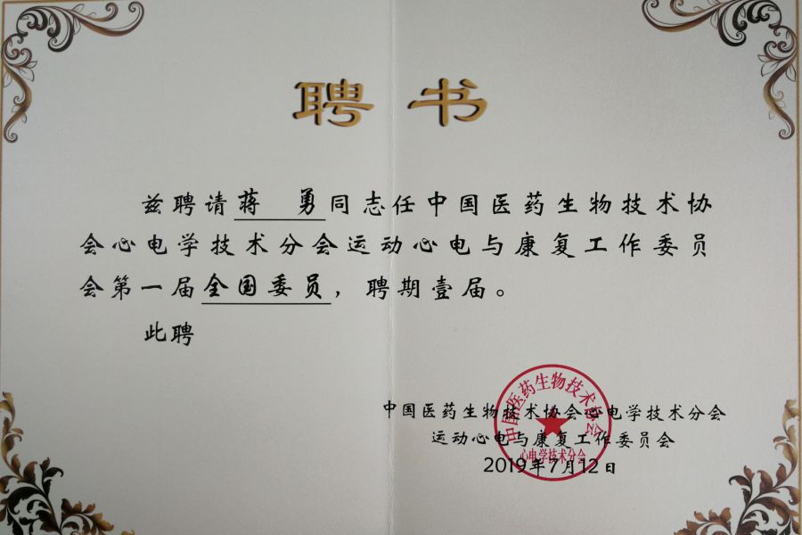蒋勇的当选是国家级学会对我院心电学技术工作的肯定。