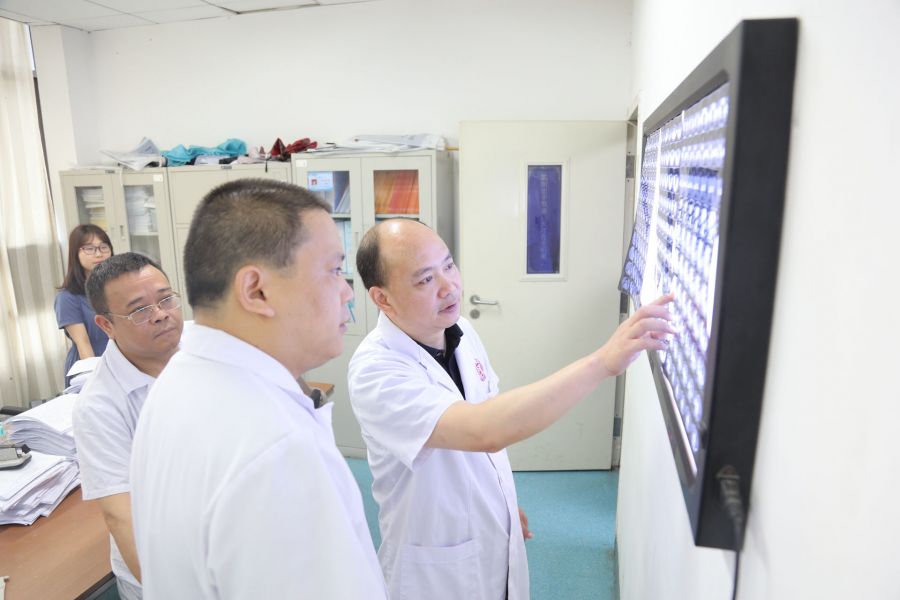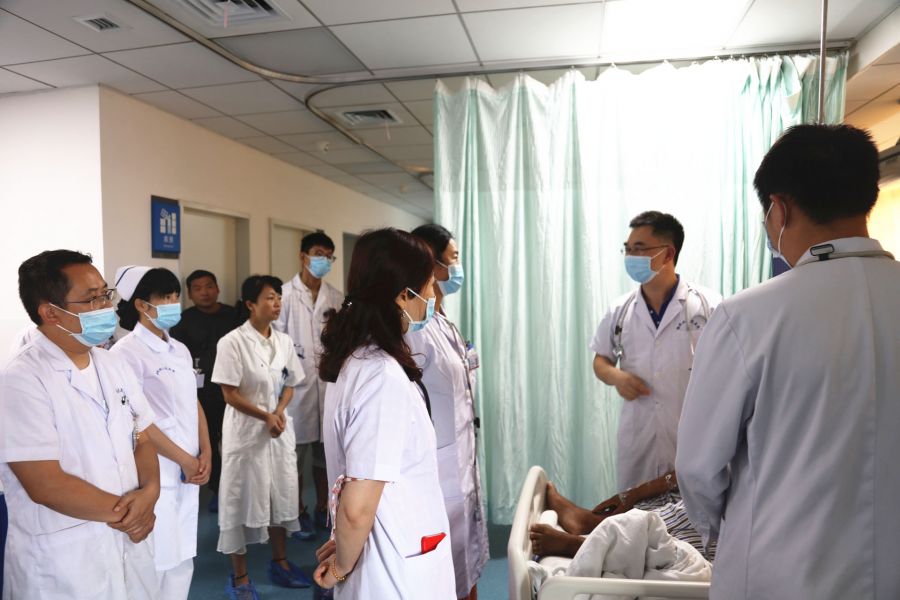湖南省人民医院的专家在病房与我院医生进行疑难病例讨论