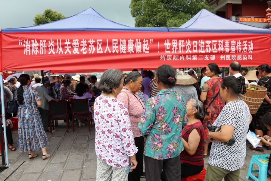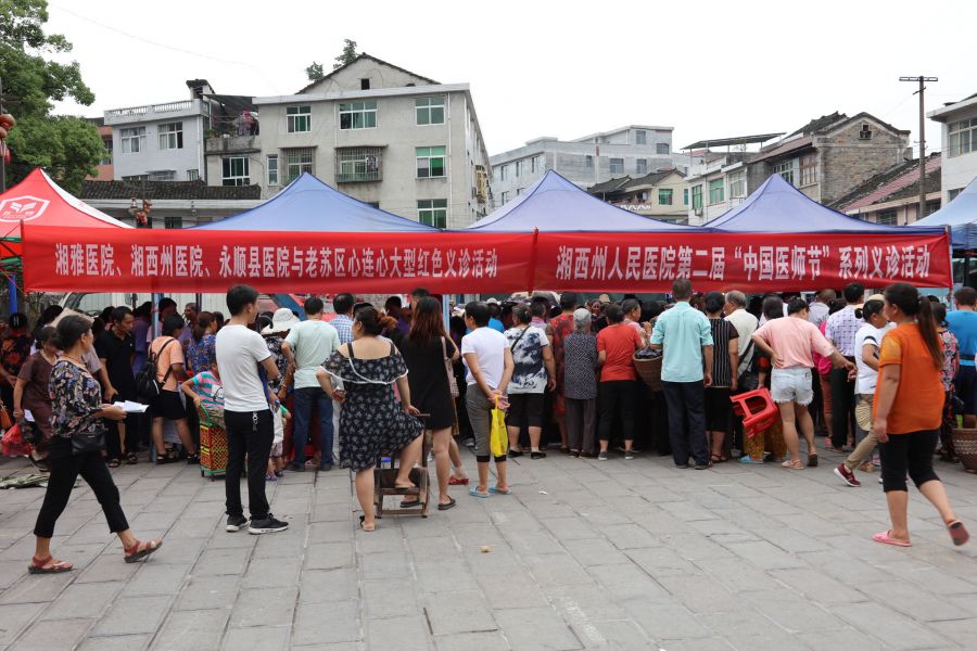 此次活动,我院派出感染科、消化内科、心血管内科、呼吸内科、老年病科及眼科等科室30余名医疗护理专家,联合湘雅医院感染科主任黄燕教授带领的12名医疗护理专家和永顺县人民医院、塔卧镇卫生院的医务人员,在老苏区塔卧镇陈列馆广场开展“消除肝炎从关爱苏区人民健康做起”为主题的反哺老苏区群众的大型红色义诊活动。