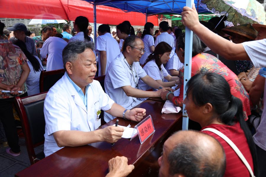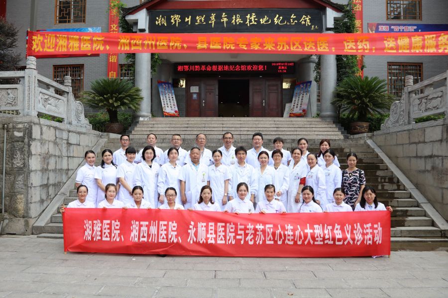 7月19日,内科第二党支部邀请湘雅医院感染科党支部、永顺县人民医院内科支部、塔卧镇卫生院党支部,在老苏区塔卧镇联合举行主题党日活动,为当地群众开展“红色义诊”。