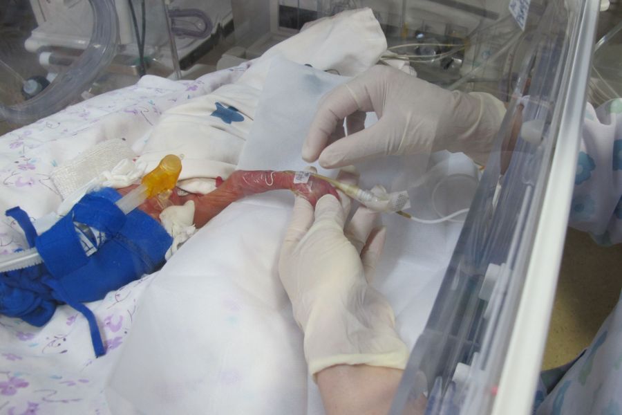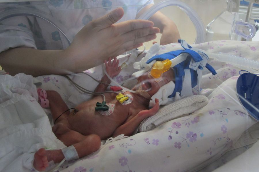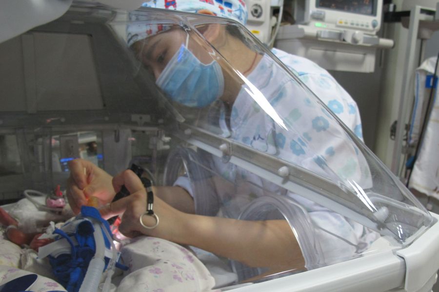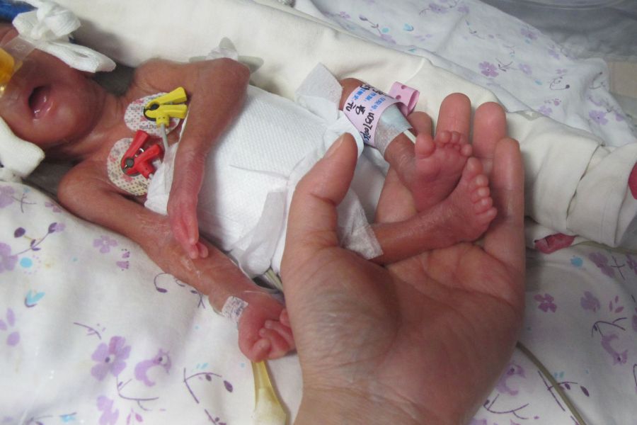 4月18日,新生儿科收治了一位胎龄25周、出生体重仅0.65kg的极早早产儿,这是我院目前收治体重最小的早产儿。0.65kg的体重既往相当于流产的胎儿,心、脑、肺、胃肠、肾脏、免疫、血液等系统的发育极不完善,致死率、致残率极高,生后即面临着呼吸、消化、循环、感染、营养、脑损伤等重重难关,容易出现颅内出血、脑室旁周围白质软化、支气管肺发育不良、坏死性小肠炎、肝功能损害、早产儿视网膜病等多系统的并发症。这种超低体重儿、极早早产儿的救治是对医院整体治疗、护理水平的极大考验。