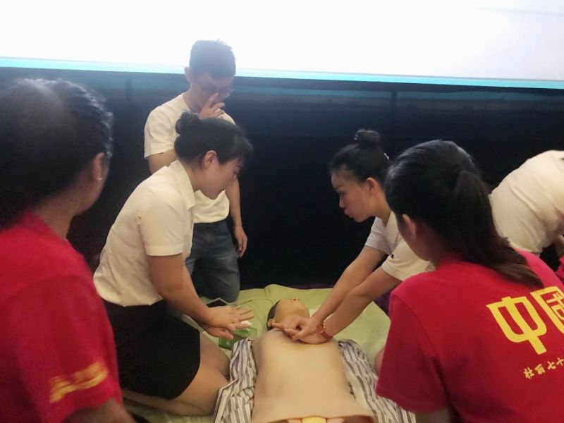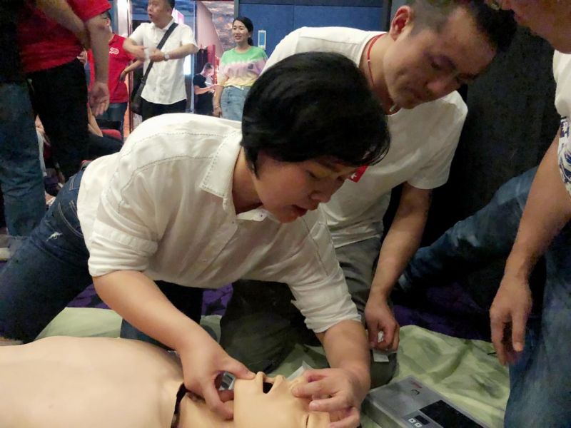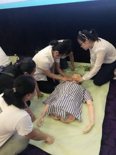 志愿者团队现场将工作人员分为五组进行一对一的实操训练,让他们真正掌握急救知识及技能。