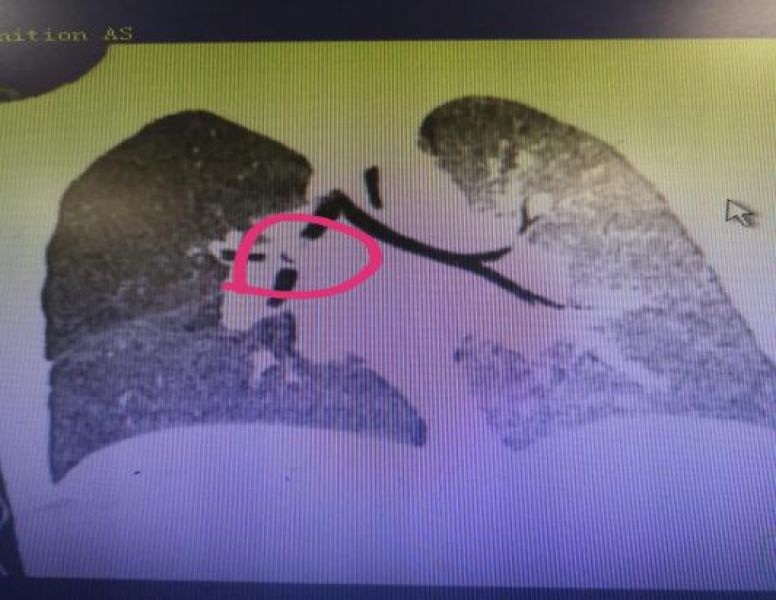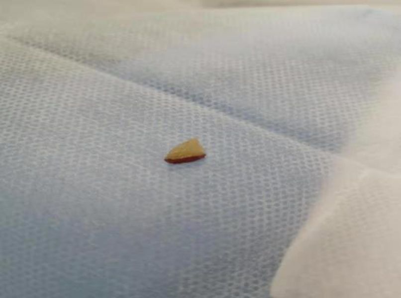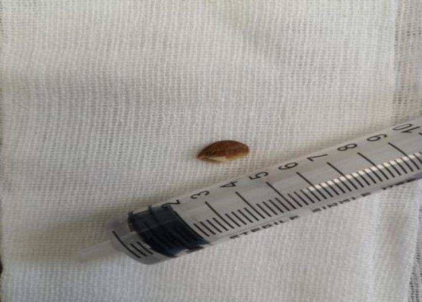 9月6日凌晨,儿一科再次收治一名误吸西瓜籽患儿。该患儿2岁,来自重庆市秀山县,6天前吃西瓜时大哭,随后呛咳,伴喘息,辗转多家医院就诊无果,遂来到我院。于6日中午成功经纤支镜用异物网篮取出一1cm×0.7cm西瓜籽。