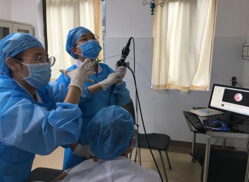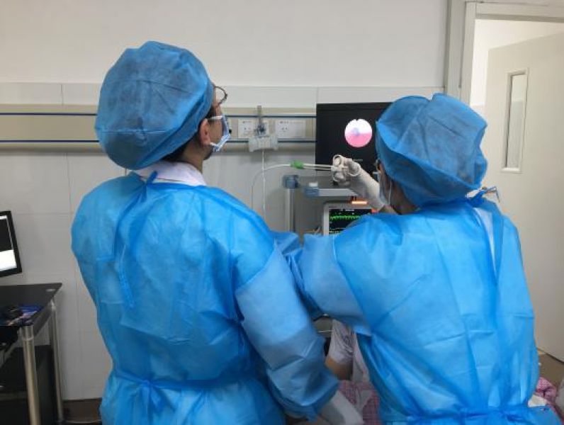 9月1日中午,又有一名2岁患儿因“进食枣子后咳嗽3天”入院。患儿3天前在家中哭吵时进食枣子,而后突然出现呛咳、喘息。完善胸部CT示左主支气管异物,值班医生田亮医师立即予氧气吸入,嘱咐家属不让患儿哭吵,并安抚患儿。他立即报告石敏主任、彭燕平护士长,联系宋小珍主治医师以及休息在家的刘翠主治医师和李毓英护士,急诊加班行经纤支镜支气管内异物取出术,历时20余分钟,一小粒新鲜红枣果肉被顺利取出,术后患儿咳嗽、喘息立即缓解,家长一颗悬着的心总算是放下了。