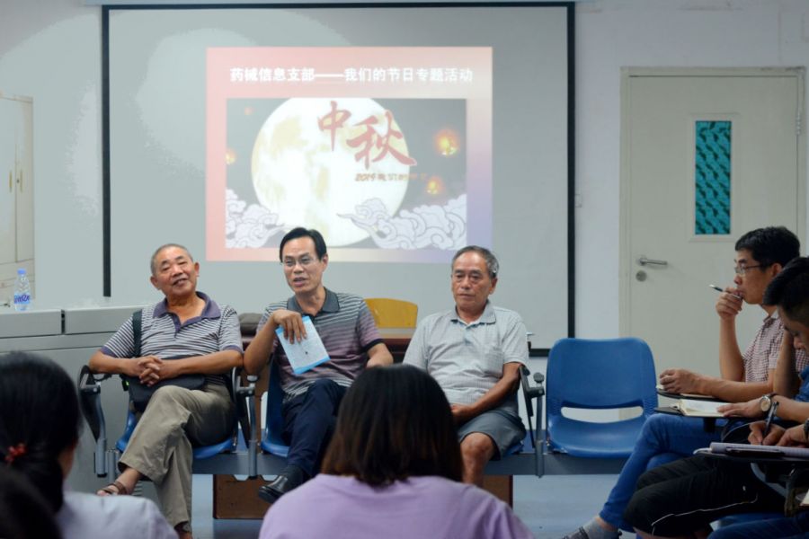 9月11日下午,药械信息支部全体党员在药剂科示教室开展邀退休党员代表共迎中秋、庆十一主题党日活动。本次活动以中秋节团聚活动的形式,以不忘初心、牢记使命,爱国敬业、为党奉献为主题,请退休老党员讲述自己的成长经历,通过新老党员在中秋、国庆节之前的交流,从而增强党性锤炼。