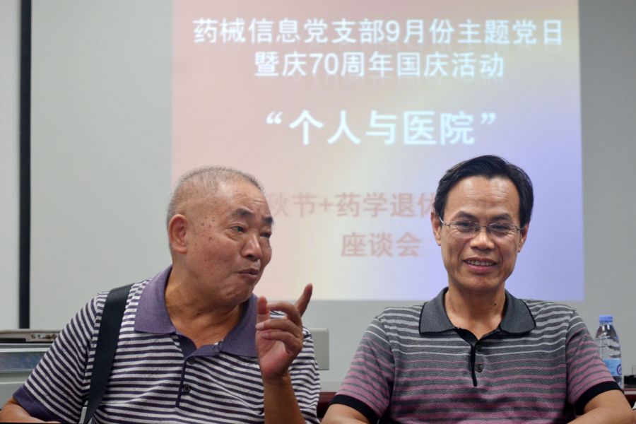 院党委委员、副院长罗勇以普通党员身份全程参加了座谈会,并简要介绍了医院现今的机构设置、业务情况。药剂科负责人介绍了药剂科的现今组织、人员、业务情况。老同志也深深感受到医院与祖国同时发展进步,并表示要感谢党的培养,感谢党带领祖国日益强盛,退休十余年生活感觉很幸福。