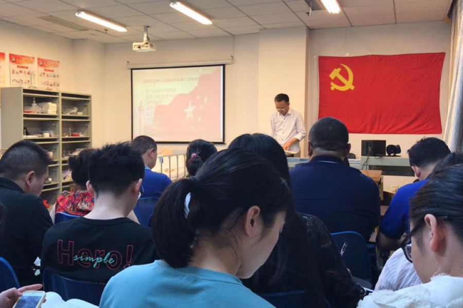 时值金秋,将逢大庆。在迎接中华人民共和国成立七十周年之际,三支部的全体党员同志手握五星红旗,共唱国歌。随后,在支部委员带领下重温党章,并解读学习《习近平新时代中国特色社会主义思想学习纲要》。通过学习党章、系列文章,促进每一位党员遵守、维护党章,自觉学习领悟主题教育精神。第三党支部书记还以“不忘初心、牢记使命”为主题为党员上了一堂生动的党课,号召支部党员多建议、共献策,扎实推进第二批主题教育活动。叶红艳要求三支部的党员在学习会议中要多提起笔、多写写字,鼓励党员与群众共同踊跃参加形式多样的主题党日活动。最后,支部委员会召开总结会议,安排部署下一步主题教育学习工作。
