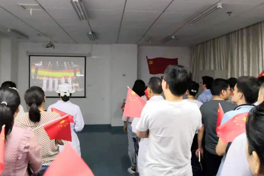 “我和我的祖国,一刻也不能分割,无论我走到哪里,都流出一首赞歌,我歌唱每一座高山,我歌唱每一条河……”悠扬的歌声拉开了主题党日的序幕,二支部全体党员挥动起手中的国旗,齐声高歌《我和我的祖国》。每一位在场的党员群众心潮澎湃、热血沸腾,大家用歌声感受和表达了感激之情、自豪之心,唱出了对祖国的热爱,对美好生活的期盼,抒发了对新时代新生活的向往,展现了昂扬向上、奋发进取的精神风貌。大家表示不仅要歌唱祖国,更要用实际行动做好本职工作,推动医院事业发展,报效伟大祖国。