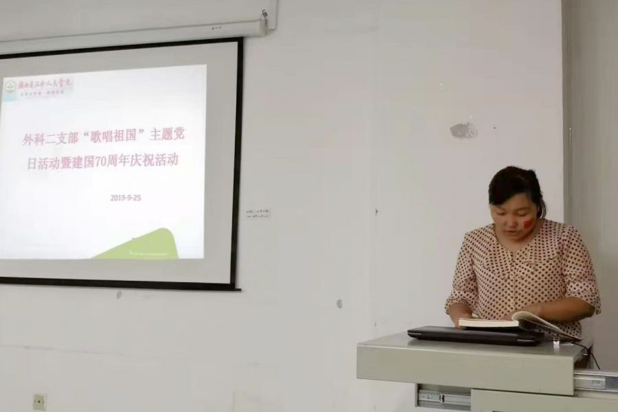 在新中国成立70周年到来之际,外科第二党支部于9月25日组织召开了“歌唱祖国、学习《纲要》”主题党日活动暨建国70周年庆祝活动。