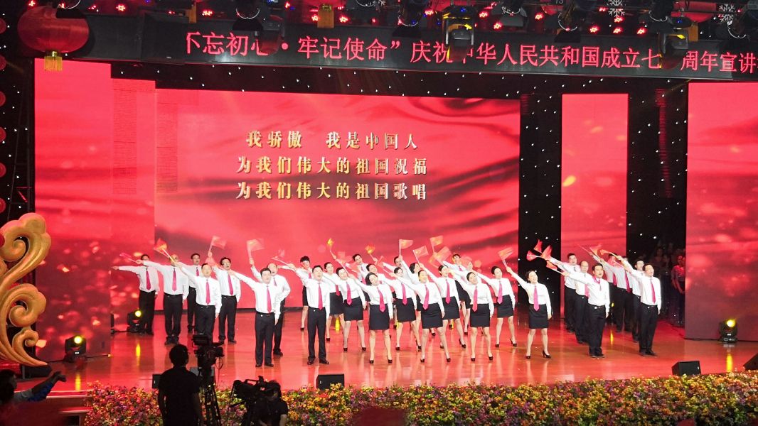宣讲会在雄壮的国歌声中拉开帷幕。此次宣讲活动以歌舞、朗诵、情景剧、舞剧、大合唱等多种形式歌颂新时代,重温红色历史,感悟红色精神,赞美伟大祖国,激励广大党员干部群众凝心聚力、再创辉煌主题。其中视频《时代楷模——余元君》展现了余元君用生命践行“治水兴湘”的初心使命,用行动诠释了共产党员忠诚、干净、担当的优秀品格,现场很多同志都感动得热泪盈眶。最后,宣讲会在《歌唱祖国》的大合唱中落下帷幕。