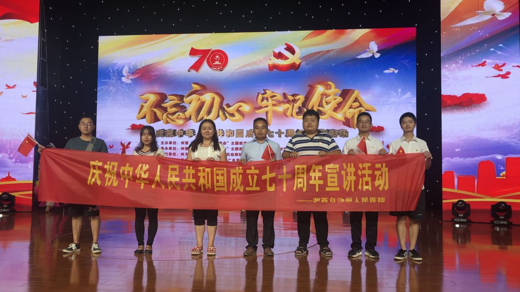 医院七名党员和群众代表观看了此次宣讲活动,大家表示,观看后深受感动,倍受鼓舞,为祖国强大和湘西州的发展由衷地自豪。回去后一定立足本职工作,不忘初心,牢记使命,为新中国七十华诞作出自己的贡献。