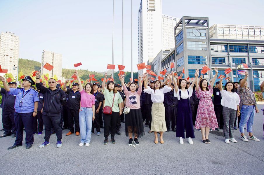 敬礼仪式后,大家兴奋地挥动手中的小国旗,大声高唱《我和我的祖国》,齐声高呼“我爱我的祖国”“祖国生日快乐”“祖国万岁”,向祖国母亲致以崇高的敬意和美好的祝福!