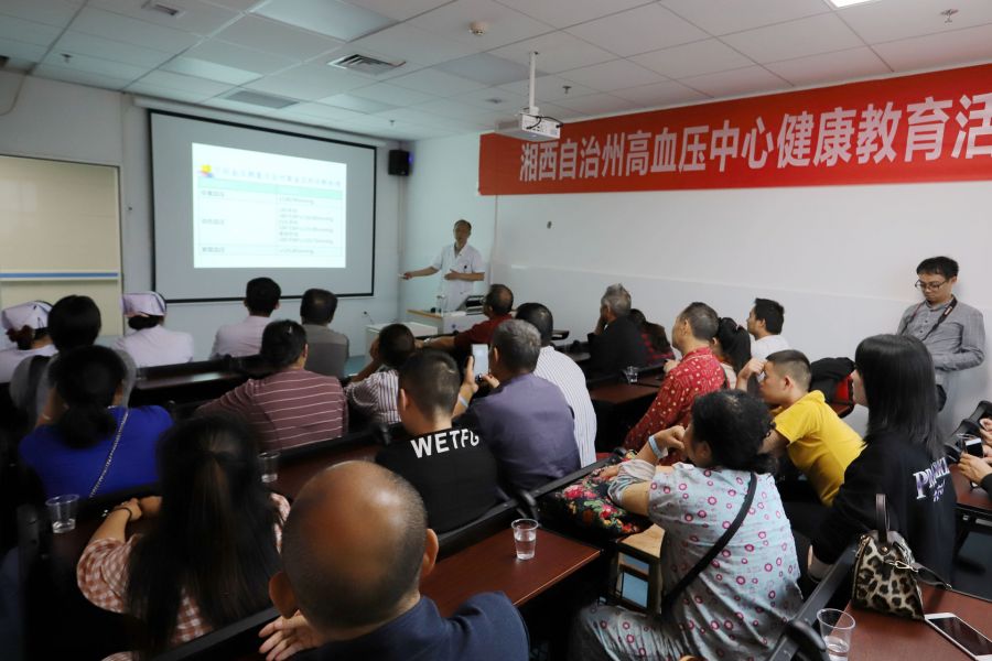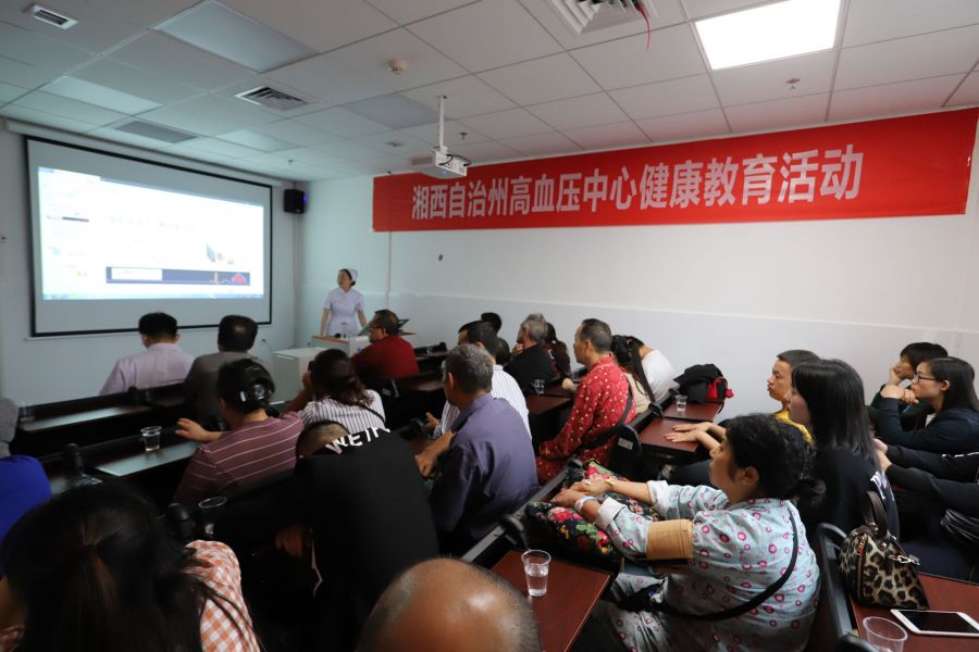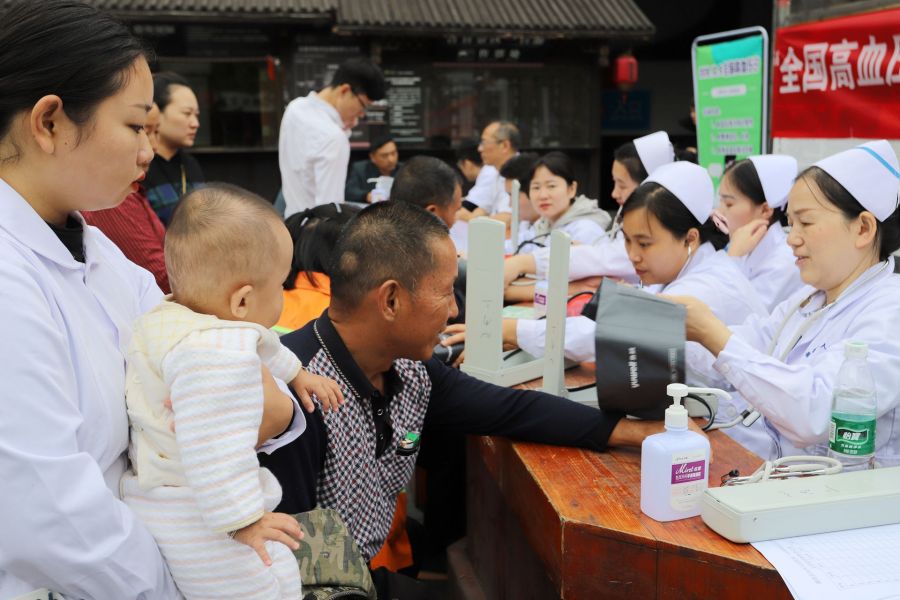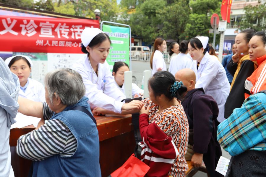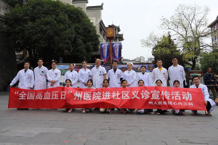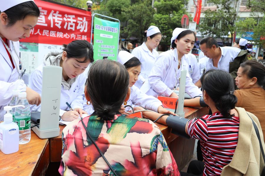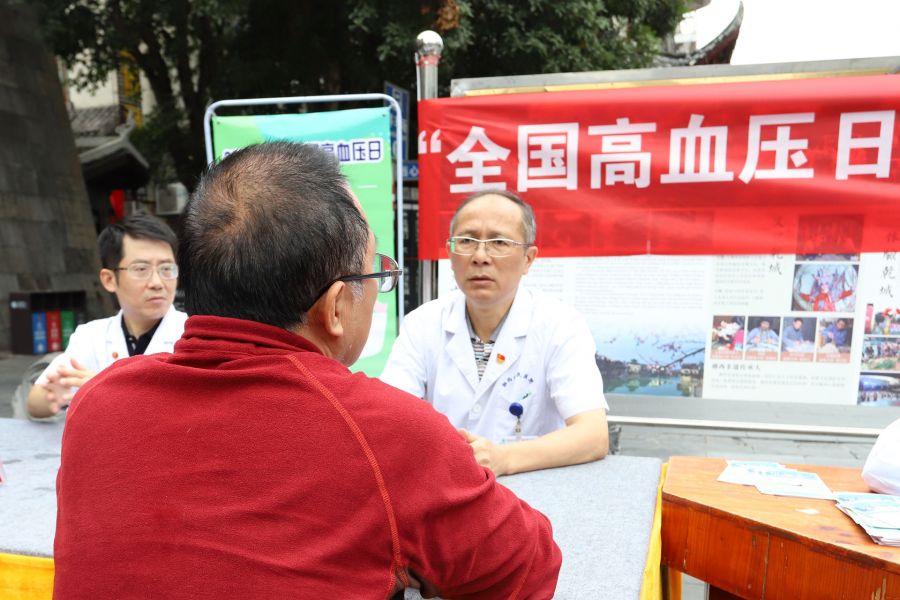 为加大高血压工作宣传力度,切实提高知晓率、治疗率、控制率,10月8日,州人民医院内科第二党支部、心内三科专家团队到乾州古城开展高血压防治知识宣传和大型义诊活动,活动旨在提高群众对高血压的认识,普及高血压的防治知识,增强社会对高血压患者健康的关注。参加义诊的医务人员为到场的社区居民进行高血压知识科普,告知高血压防治知识,提高社区人民对高血压的认识,加深对防治高血压的重视。心内三科彭学军主任、田鑫副主任、内科第二党支部书记瞿章书为居民进行免费健康咨询。心内三科护士长田宏芳等为社区居民免费测血压。现场还发放高血压防治手册,并为不识字及不方便的居民细心讲解“什么是高血压?引发高血压的原因有哪些?高血压常见临床症状?高血压诊断标准?高血压的危害?得了高血压怎么办?高血压治疗的关键,血压达标的标准”等手册内容。本次义诊活动结束时,社区居民对此次活动表示了感谢,并且希望以后多进行此类活动。