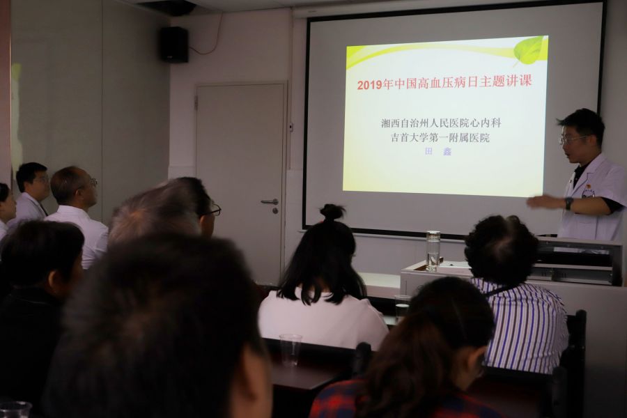 10月8日下午,在心内三科示教室给患者进行高血压相关方面讲座,患者及其家属对此次活动热情高涨,示教室内座无虚席。田鑫副主任首先讲解高血压的危害,他表示高血压患病率逐年增加,加强患者对高血压危害的认识,是每个医务人员义不容辞的责任。邓策主治医师讲解了高血压治疗的十二大误区,让患者了解自己存在的误区及如何避开误区,并指出高血压不可怕,只要做到管住嘴、迈开腿、放宽心,在医生指导下规律吃药、坚持监测血压、定期复查,就可以管好高血压,畅享新生活。田宏芳护士长讲解了高血压的自我管理,包括家庭血压监测,规范药物治疗,健康的生活方式等。在最后的提问环节,彭学军主任为患者及家属解答疑问,与患者及家属讨论高血压相关知识。