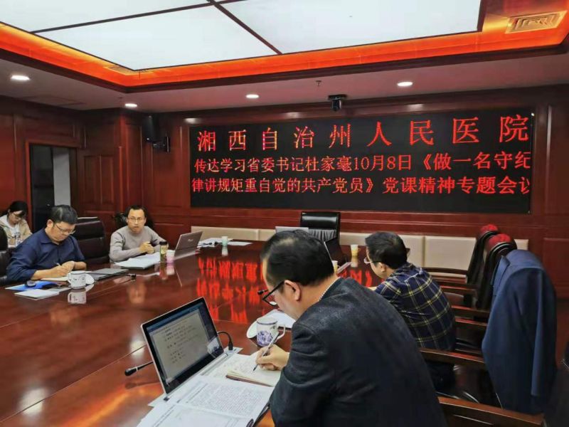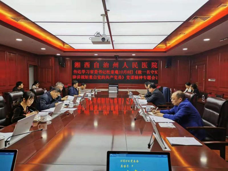 会议通报了州委关于近期各单位主题教育工作任务提示,认真落实州委办关于主题教育第一项和第四项专项整治问题查找“回头看”要求。研究通过了《州人民医院支部主题教育推进方案》,对进一步细化各支部主题教育工作落实提出了具体要求。传达了湖南省委书记杜家豪10月8日为党员干部主讲《做一名守纪律讲规矩重自觉的共产党员》的专题党课。