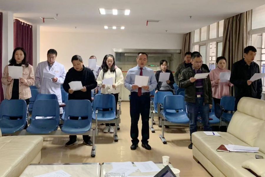 活动伊始,党员们集中学习了《习近平关于“不忘初心、牢记使命”重要论述摘编》。学习结束后,梁民勇副院长为大家作了题为《明初心 守初心 坚定理想信念》的党课,要求老院区党支部的党员切实提高政治站位,做“两个维护”的践行者,做对党忠诚的“老实人”,始终把“不忘初心、牢记使命”作为落实医疗工作的根本遵循,促进“不忘初心、牢记使命”主题教育在医院高标准高质量开展,坚持问题导向,在“找差距、抓落实”上见成效。随后党员们集体合唱了《义勇军进行曲》,回望追溯,重温中国共产党人的初心与使命。梁民勇副院长接着作了题为《担使命 履职责 矢志为民服务》的第二堂党课,强调作为一名领导干部,要在坚定理想信念、强烈的忧患意识、较高的能力素质、良好的精神状态、扎实的具体行动等五个方面发挥好模范带头作用。同时紧扣主题,结合医院实际,立足于本职岗位及分管工作,提出一系列问题和相应的整改措施。他还要求老院区党支部的党员一定要坚决做到“两个维护”,为人民群众提供更加安全、优质的医疗服务。最后,再次合唱了《我和我的祖国》,激发党员们荣辱与共的爱国情怀。