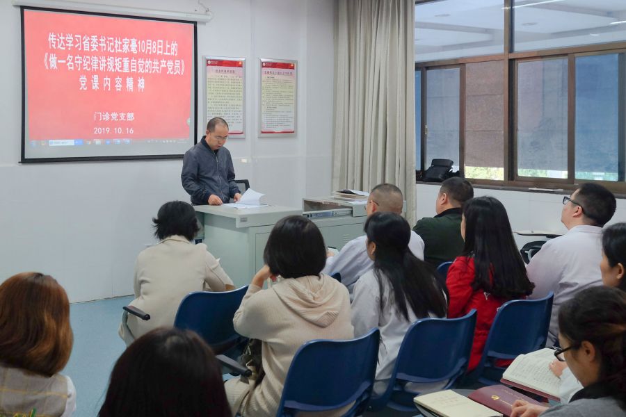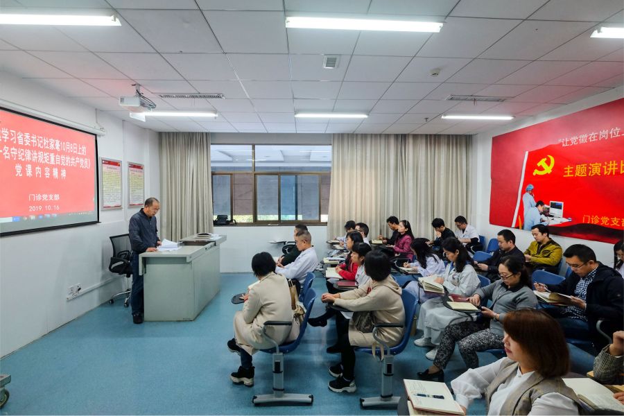10月16日下午,门诊党支部组织支部党员集中传达学习省委书记杜家毫在省委党校专题党课精神。