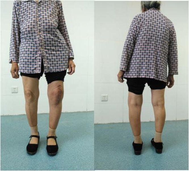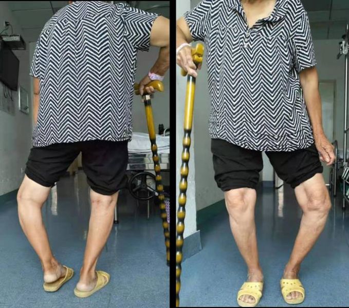 术后患者关节畸形得到明显纠正,疼痛得到有效缓解,活动度也明显改善。整个围手术期贯彻快速康复理念,术后第二天患者便可借助助行器独自行走,无任何神经受累症状。手术后一个月复查时,张某已经可以脱拐行走。患者表示自己赶上了好时代,感谢政府精准扶贫政策助力,感谢州医院骨一科医护团队。