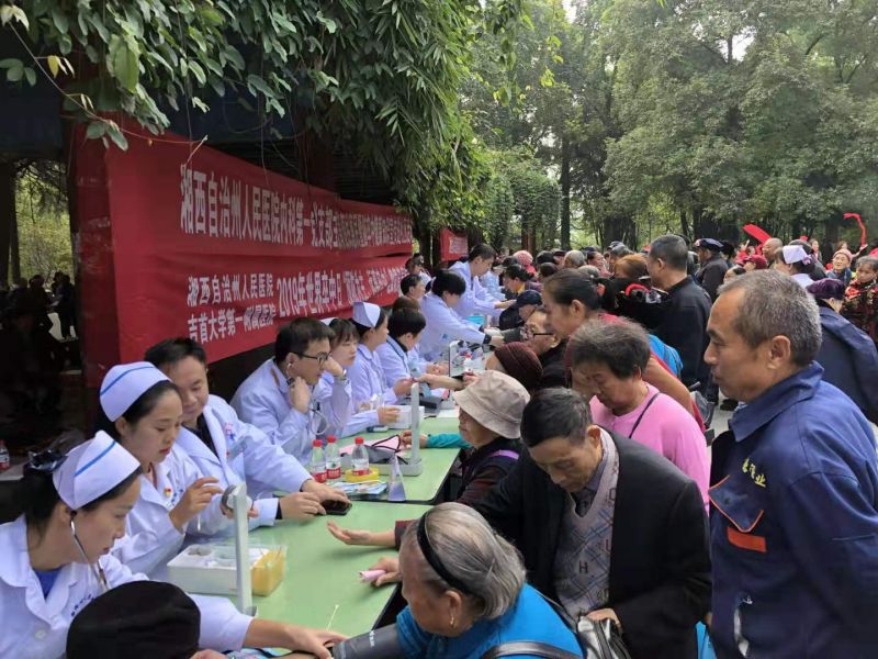 州人民医院内科第一党支部、神经内科、康复科和吉首市峒河街道卫生服务中心的30余名医护人员共同参与本次活动。活动以控制脑卒中危险因素、筛查和早诊、早治为重点,开展了脑卒中危险疾病筛查、神经系统疾病咨询、卒中康复指导、卒中防治、高血压及糖尿病防治等多种疾病的诊治工作。前来义诊的患者络绎不绝,热闹非凡,历时3个多小时,现场服务了500余名群众,发放了500多册的卒中健康防治资料。活动结束后,卒中中心副主任黄天清等医疗专家与吉首市峒河街道卫生服务中心的医务人员进行了学术交流和技术指导。此次义诊活动的开展,紧扣“不忘初心、牢记使命”主题教育,是一次便民、惠民、爱民的有意义活动,得到了群众的好评。