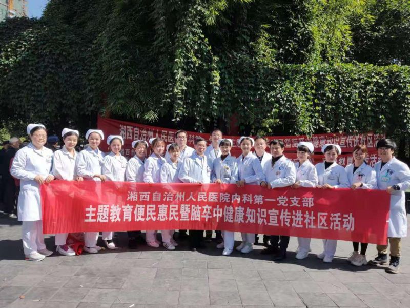 为进一步提高民众对脑卒中预防、治疗、康复等知识的知晓率,深入开展“不忘初心,牢记使命”主题教育惠民爱民活动,湘西州人民医院内科第一党支部、州人民医院卒中中心、吉首市峒河街道卫生服务中心联合开展以“预防为主,远离卒中”大型义诊健康知识宣传活动。