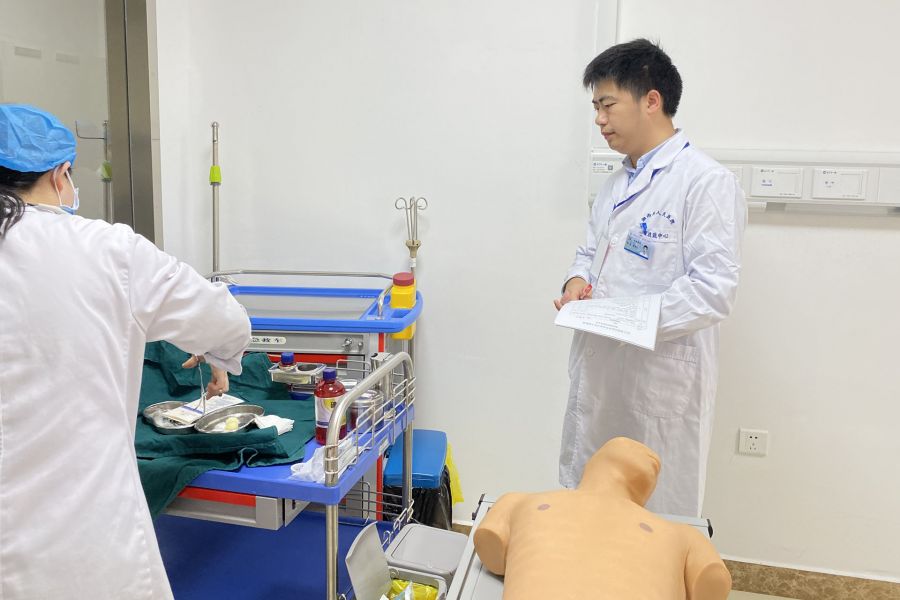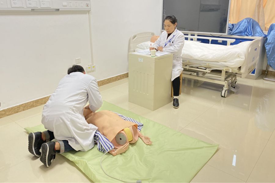 为做好此次考核,科教科根据临床医学专业实习大纲要求,从考核的项目、考场布局、培训用物准备到标准化病人的挑选都进行了精心的准备,分两批进行了体格检查、心肺复苏、换药术及腹腔穿刺的考核。在体格检查环节重点考核学生的病史采集技巧、体格检查技巧、人道关怀及临床判断能力;在心肺复苏环节重点考核学习的急救能力;在换药术环节,重点考核学生无菌观念的能力;在腹腔穿刺环节,重点考核学生临床基本操作能力。