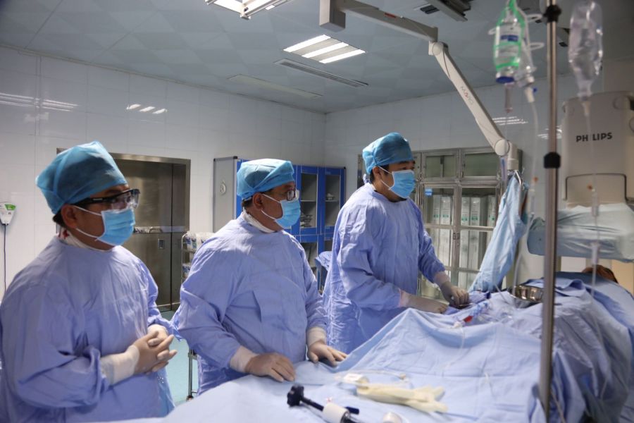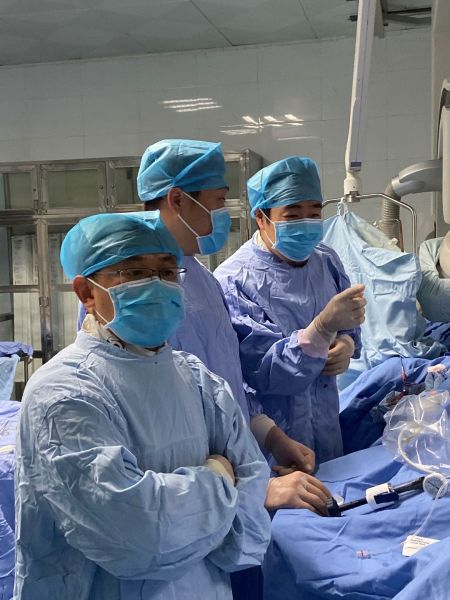石原昭三教授与心血管内一科的医护人员进行了阅片,讨论手术策略,确定手术方案后,与心血管内一科的手术医生共同为患者进行了介入手术。此次接受手术治疗的6名患者,都是既往冠状动脉造影结果显示病变较重的高难度慢性闭塞性病变患者。6台手术通过不同的手术方法和术式,术中克服了各种困难均取得了成功,术后患者恢复良好。