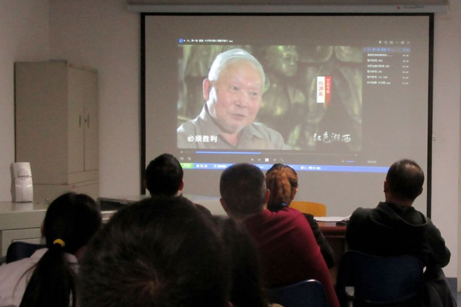 药械信息党支部书记首先简要介绍“四项教育”视频的相关内容及其观学意义,然后依次播放了《红色湘西》“十万坪大捷”、《形势与政策》之“当前国际形势与中国特色大国外交”、《廉政中国》之“皮黔生忏悔录”警示教育片、《时代楷模》之“余元生的故事”先进典型片。