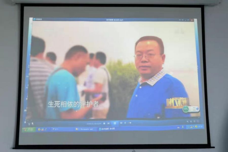 会上依次播放了《形势与政策》之“当前国际形势与中国特色大国外交”;《红色湘西》之“奠基•十万坪大捷”;《时代楷模》之“余元君与洞庭湖生死相依的故事”;《廉政中国》之“皮黔生腐败警示录”。