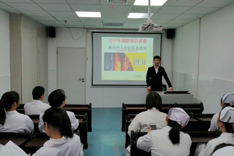 21日,血液内科邀请湖南省旭泽防火中心周国游老师前来血液内科进行消防知识培训授课,血液内科全体人员参加了此次消防安全知识培训。培训从基本的消防知识入手,穿插消防事故案例的讲解,通过通俗易懂而且生动的讲解,使大家对日常工作、生活中易发的火灾及面对火灾应如何自救和扑灭火情有了更加深刻的认识和了解。同时,还行了现场演示教学,边演示边讲解动作要领,之后还手把手地教大家如何正确使用消防器材,并对不同类型的灭火器,如二氧化碳、干粉、手推式灭火器等都做了详细的说明。