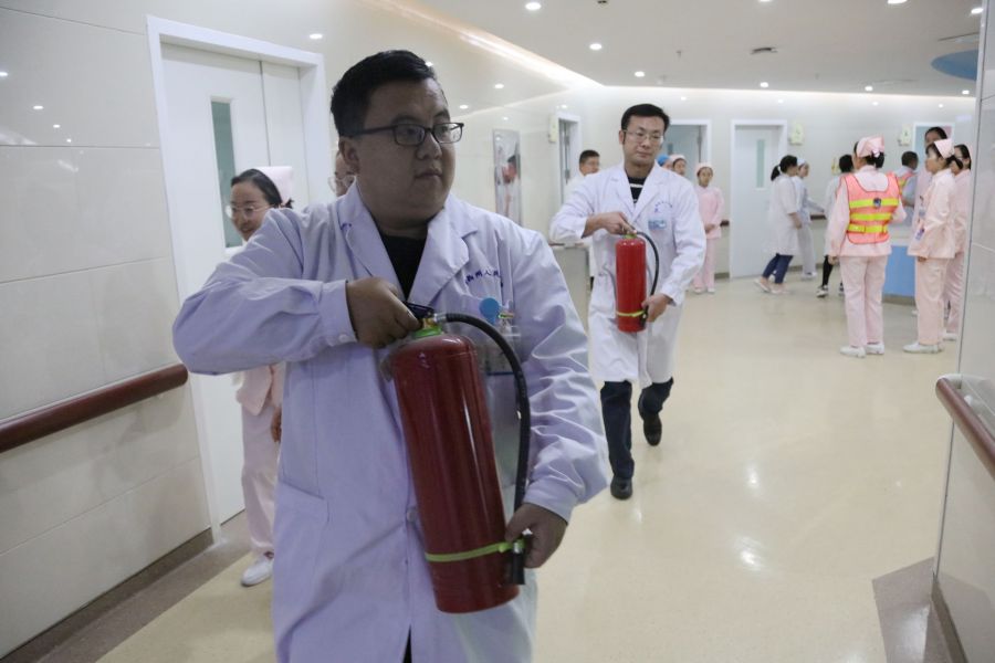 作为特殊的公共场所,医院人群复杂,病员多且行动不便,加之易燃易爆物品和大型电气设备多,医院历来都非常重视消防安全工作,每年都组织消防理论和操作培训,针对重点科室、重点区域,更是通过组织消防演练,着力提升火灾中组织转移病人及自我救护的能力,培养起医护人员在紧急情况下勇于奉献、团结协作的精神。