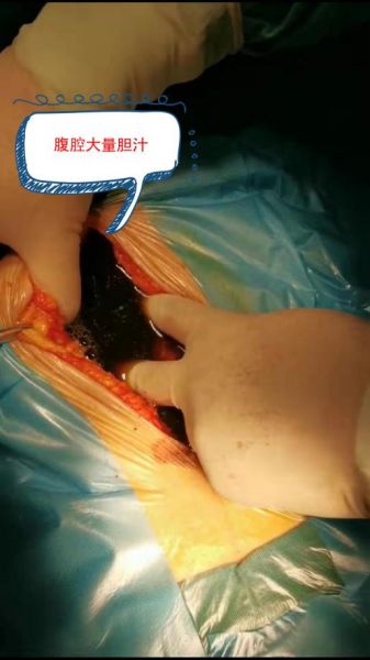 该患者为什么不选择腔镜手术呢?因为患者胆囊穿孔致胆汁性腹膜炎,根据影响检查判断,患者腹腔明显大量胆汁性积液,通过腹腔镜是很难进行腹腔清洗的,患者术后快速康复的一个关键因素就是腹腔灌洗要充分,最大化减少术后腹腔胆汁残留。另外一个方面,患者急诊入院,呼吸情况不好,为减少气腹影响而快速完成手术,开腹也是最佳选择。作为一位成熟的外科医师,不能为了微创而微创,一定要综合分析,选择最有利于患者术后康复的治疗方案。