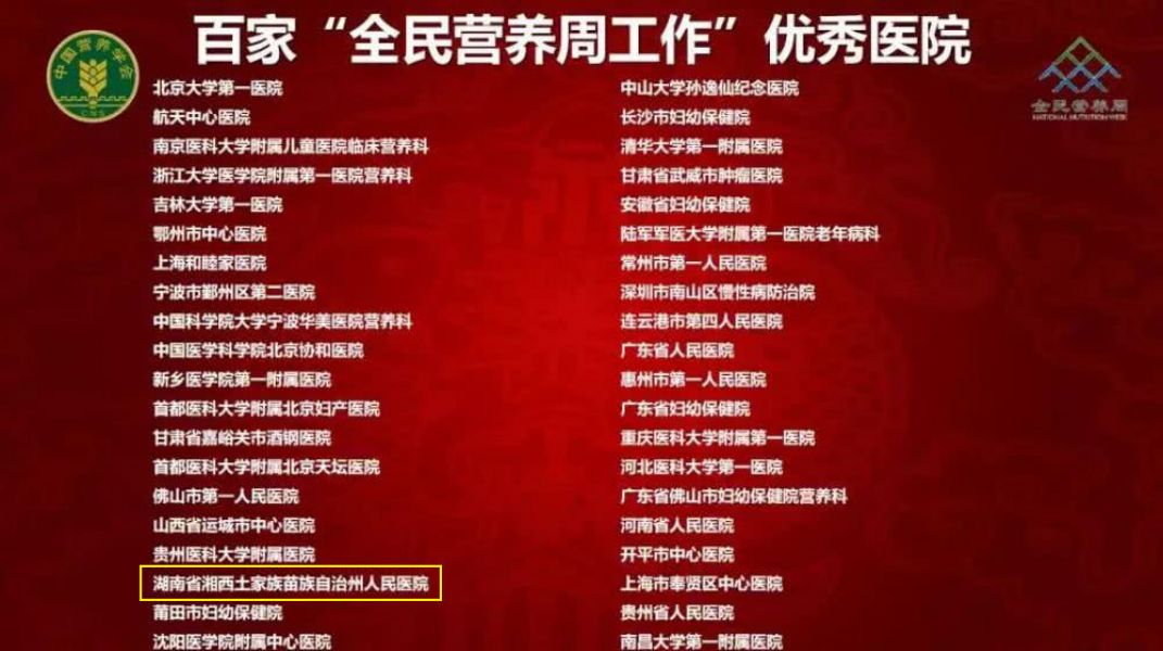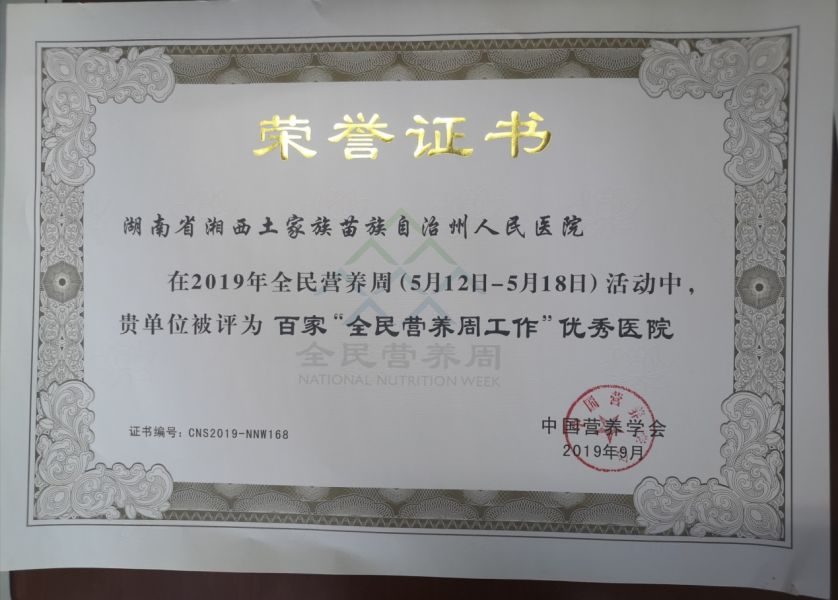 近日,凭借在营养健康领域的突出表现,州人民医院被中国营养学会评为百家“全民营养周工作”优秀医院。