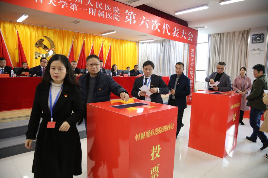 在雄壮的《国际歌》乐曲中,中国共产党湘西自治州人民医院第六次代表大会胜利闭幕。