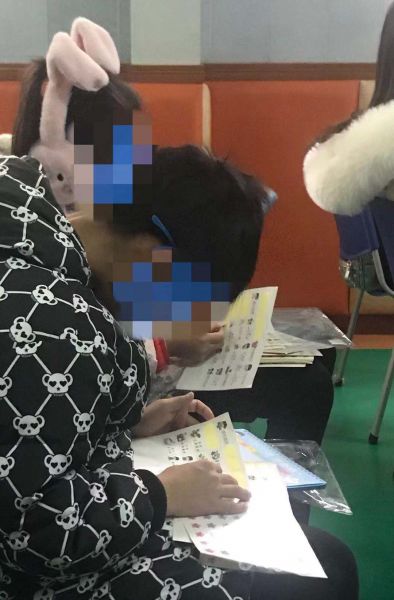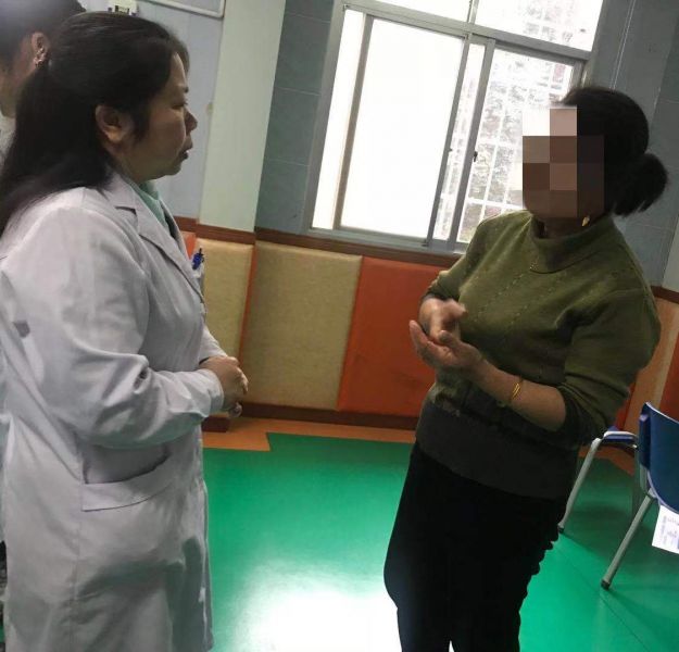 工作人员和家长互动