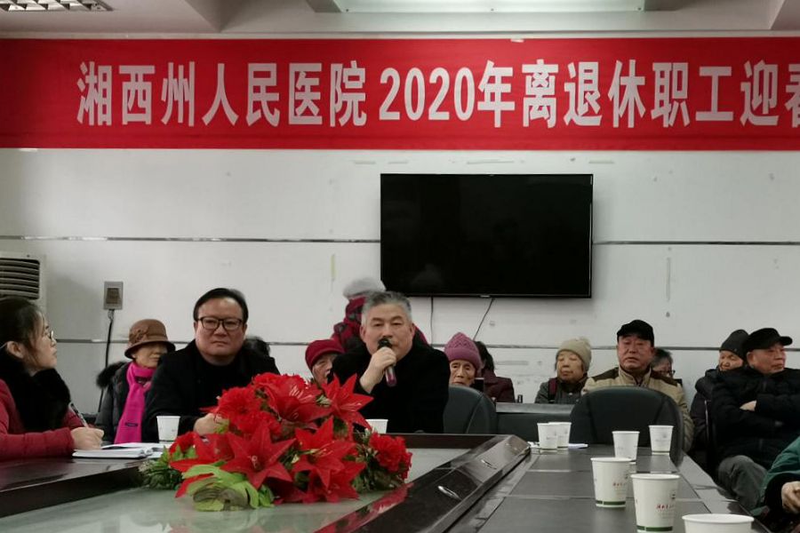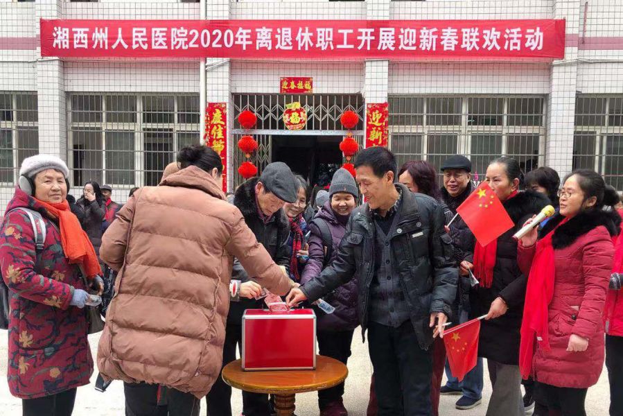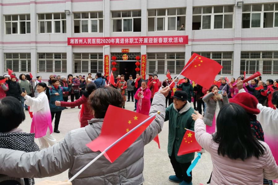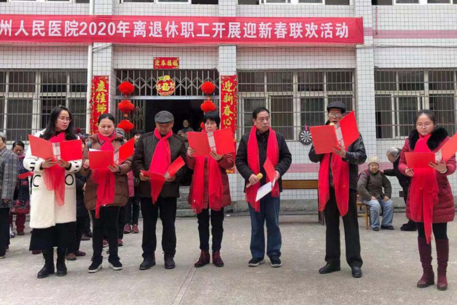 1月13日,州医院离退休职工在老院会议室和蓝球场举行2020年迎新春活动。院党委书记彭剑涛、院长周明欢、副院长贾小卷、工会主席江宏冰和300多名离退休同志欢聚一堂,辞旧迎新,共迎新春佳节。