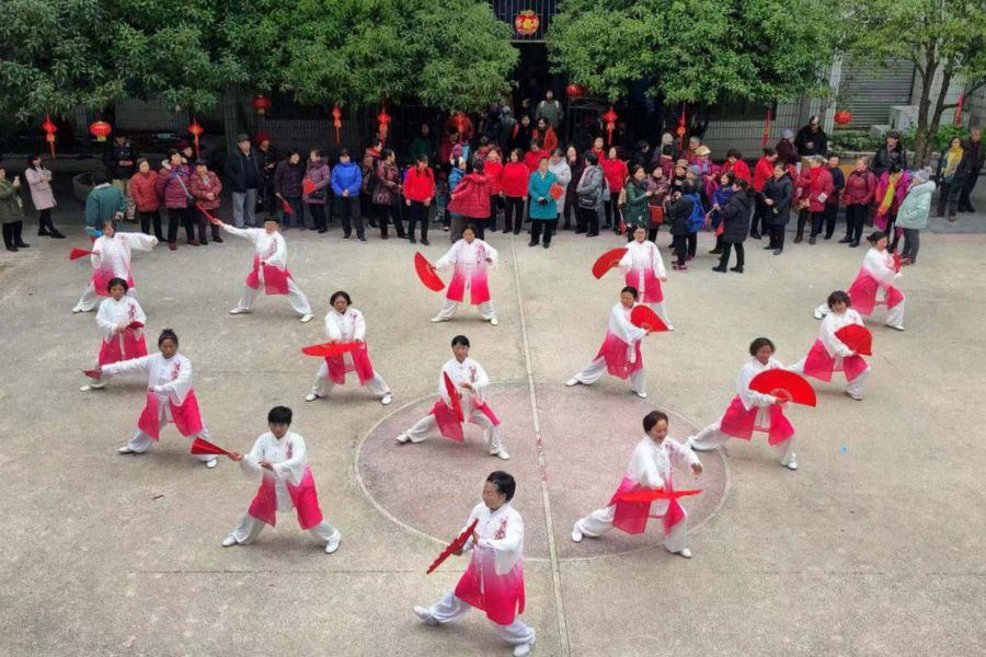 迎新春联欢活动在老干办工作人员和老干党支部支委的诗歌朗诵“拜年”中拉开序幕。接下来是全体离退休人员合唱《我和我的祖国》,为凤凰县禾库镇扶贫村的留守儿童进行爱心捐款,退休太极队表演太极拳、太极扇,退休文艺队表演《中国风》等节目。文艺表演结束后,又开展了丰富的游园活动,猜迷语、夹乒乓球、投飞镖。活动中离退休老同志用歌声、舞姿、欢声笑语表达对医院这个大家庭的热爱,对美好生活的向往,现场洋溢着喜迎新春的气氛。