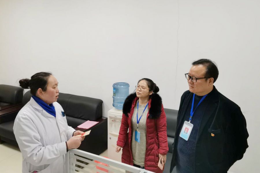 异地困难党员家属向贾小卷副院长报告母亲的健康状况
