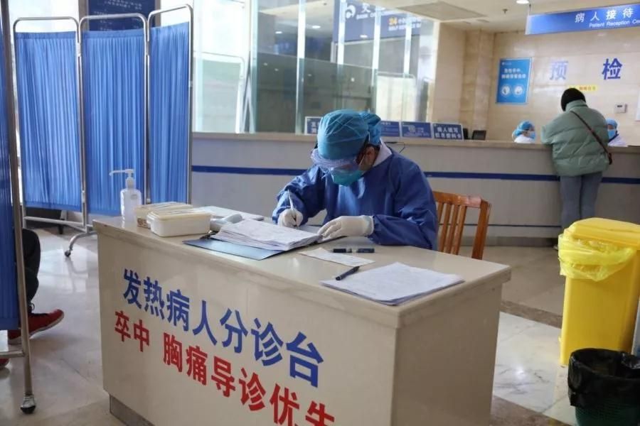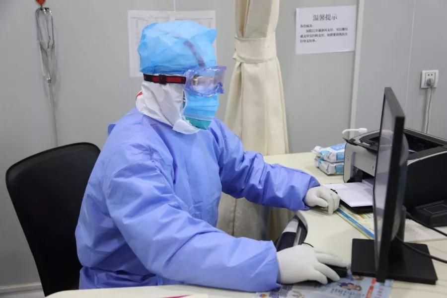 在发热门诊,坐诊医生戴着防护口罩、眼罩,站好第一班岗