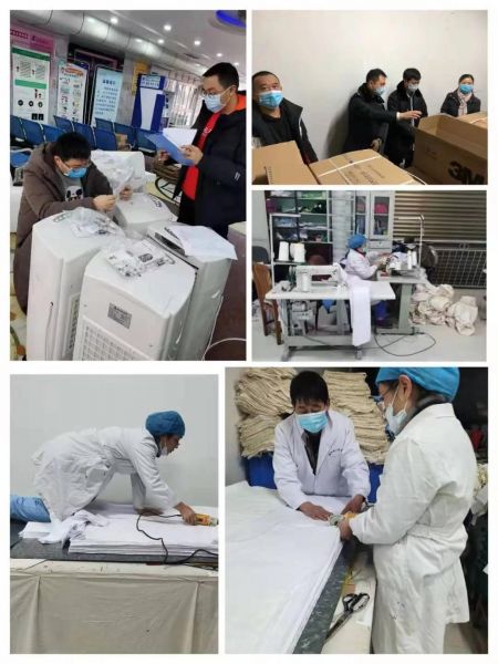目前我院医用防护用品消耗量大,库存严重不足,后勤多部门协同保障医疗物资供应,加大采购力度和自行加工制作隔离衣裤和洗手衣裤。