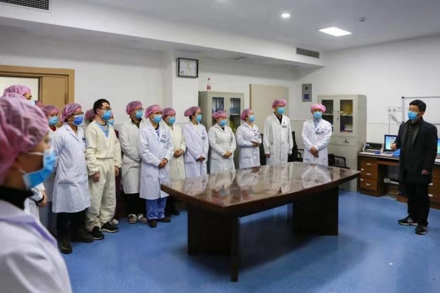 周明欢院长代表院党委、院行政对一线医务人员致以崇高敬意和衷心感谢,并进行了战前动员。周明欢对设备、药品、总务、后勤特别是防护物资的保障工作逐项进行了检查、落实。他要求大家做好演练,做好迎接病人的充分准备,并一再强调要做好医务人员自身的防护工作,他表示州医院始终是定点医院一线医务工作者的坚强后盾。