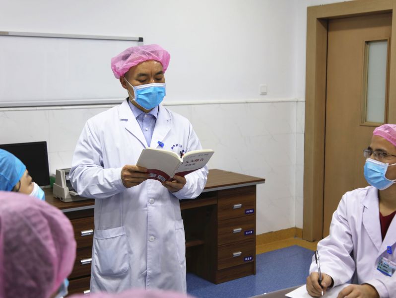 当天,我院派驻州新冠肺炎定点医院的医护人员在病区里成立党小组,召开小组会议。在我院副院长、州新冠肺炎定点医院业务副院长梁民勇的带领下,全体党员重温誓词,学习了《习近平新时代中国特色社会主义思想学习纲要》、《中国共产党党内重要法规汇编》等内容,并结合当前新冠肺炎疫情形式,着重加强了新时代中国共产党人的初心和使命的学习,增强党员党性教育,进一步激发党员学习工作热情,切实把初心化为恒心,把使命化为担当,为更好地守护人民健康贡献力量。