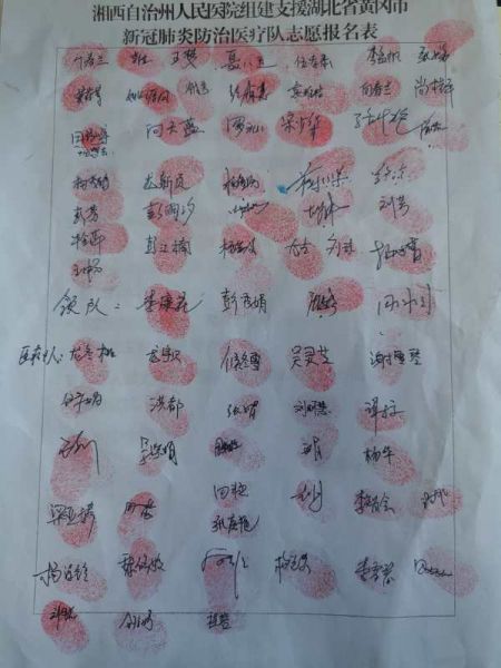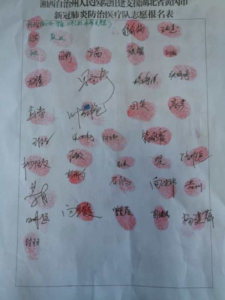 上午10时,州人民医院召开紧急动员会。无需太多的语言,宣读上级文件的话音刚落,大家就呼然一声从座位起身,排队走向前排,在报名表上写下姓名、按上手印。没有豪言壮语,只有跃跃欲出,人人化作了即将出膛的子弹。