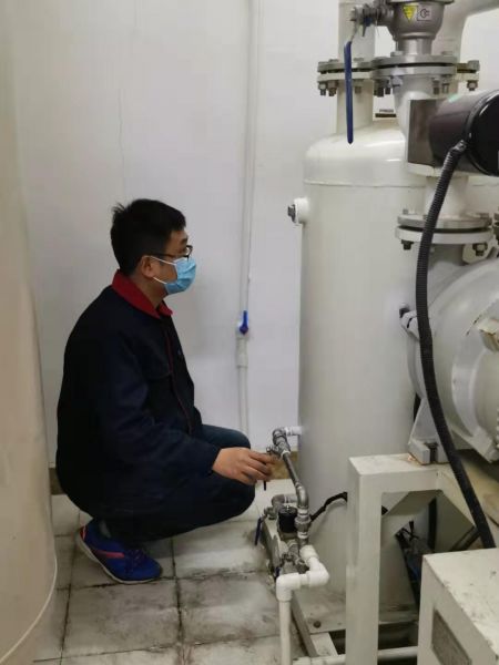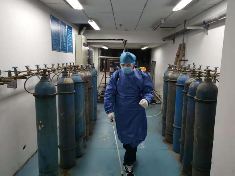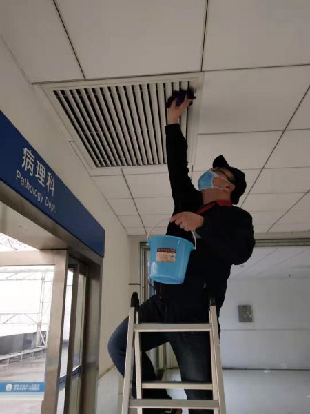 在这场没有硝烟的战斗中,总务科净化空调班组全体工作人员迅速行动起来,对全院中央空调、净化空调、负压、空压、汇流排医疗气体等系统进行全面检测,清洁消毒。