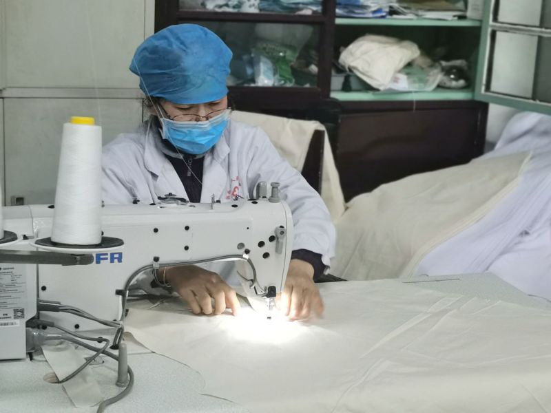 1月27日下午,根据医院疫情防控工作安排,因定点病区、发热门诊、预检分诊医护人员使用的一次性防护服、一次性隔离衣裤等物资紧缺,需紧急制作布类防护服。尽管是大年初三,总务科缝纫组立即投入工作,日夜赶制连体防护服、洗手衣裤、隔离衣裤,满足一线医护人员的工作需要。