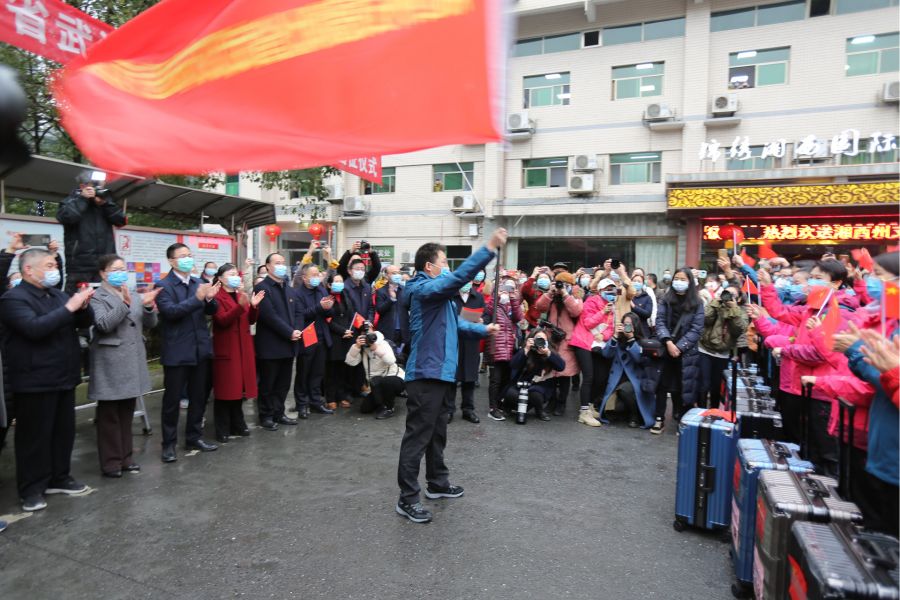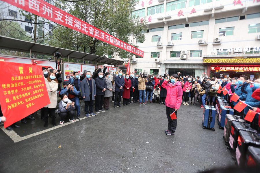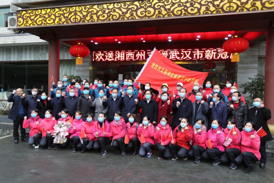 2月21日上午9时,以“逆风而行,大爱无疆,湘鄂深情”为主题的支援湖北新冠肺炎防治医疗队出征仪式,在湘西州卫健委隆重举行。