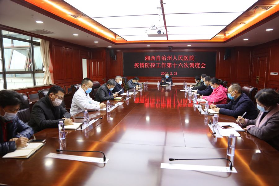2月21日下午,在内科楼23楼一会议室,州人民医院召开疫情防控工作第十六次调度会,针对防控形势的新变化,研究医院防控工作的具体问题。